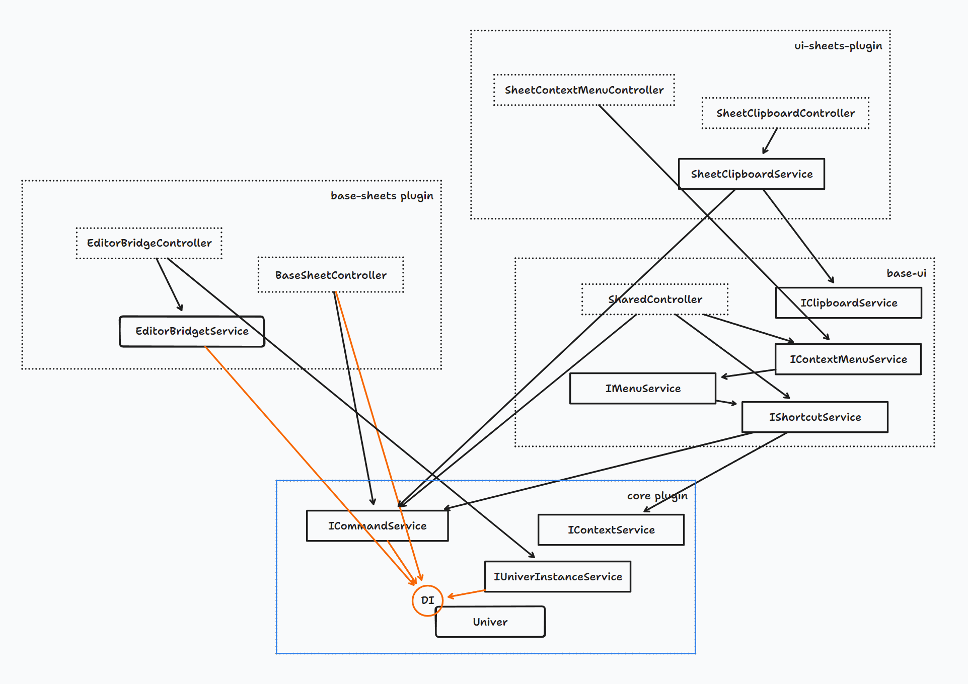 - Maintainable: By distinguishing between plugins, the responsibilities and dependencies of Univer's modules are clearer, reducing coupling between features and making the code easier to understand, modify, test, and maintain.